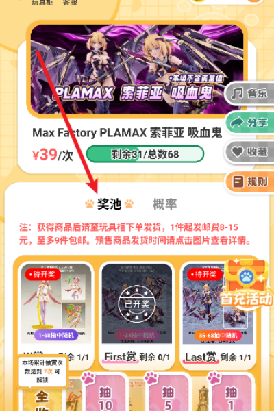 2、在商品详情页面确认价格与剩余数量后点击进入下方奖池区域查看具体奖励信息。