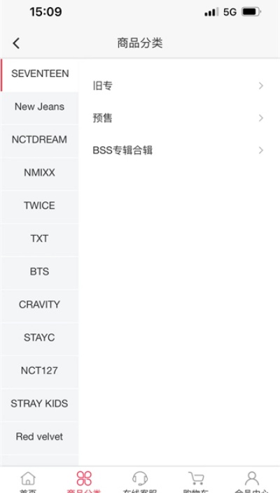 4、进入商品分类页面可按团体进行精细化筛选,方便快速定位目标周边商品。