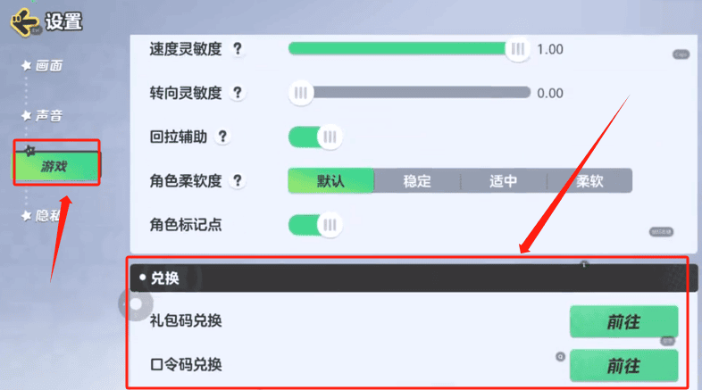 3.选择相应的礼包码/口令码入口,点“前往”按钮去兑换