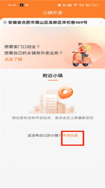 1、打开软件后先完成账号登录,成功进入首页后点击【申请加盟】入口进入相关功能页面。