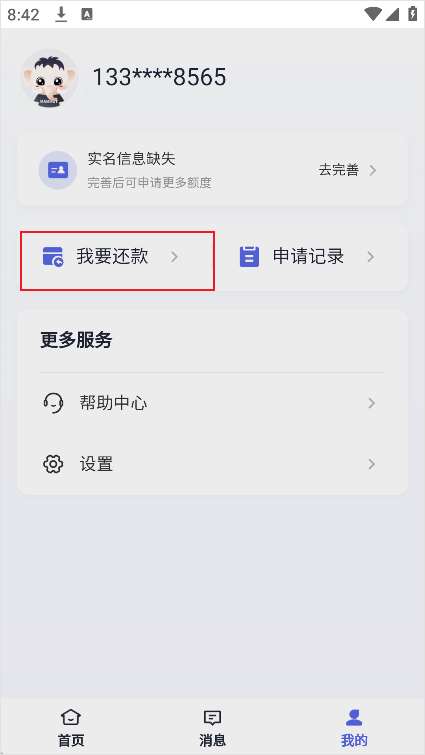 2、在个人中心中选择“我要还款”;