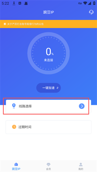 1、打开豌豆IP App,点击选择路线