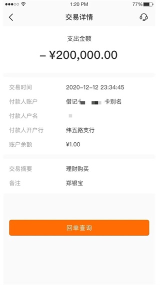 1.在郑州银行手机银行首页,点击”交易明细“进入页面,点击想要查看的一笔交易,即可查看具体的交易明细;