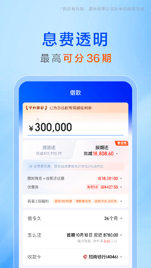 贷款额度、放款时间、通过率等以实际审批为准,贷款有风险,借款需谨慎,请根据个人能力合理贷款