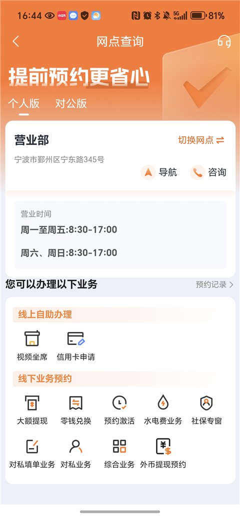 宁波银行还能够为您提供信用卡业务我信用卡还款,协议收款,分期业务,转账提现,网上支付,卡片管理,积分管理等服务线上自助办理,手机银行无法办理的业务你还能通过宁波银行手机银行APP查询附近营业厅,更有手机充值,利率查询,理财计算器,游戏点卡,最新公告等服务等你来体验。