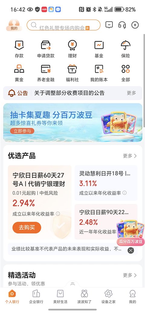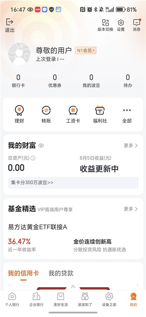个人客户的优质金融服务平台,打造四类客户专版:标准版,简单直接、享基础服务上手快;白金版,全旅程财富陪伴服务,助力财富稳健增值;私银板,全新综合化、全天候的尊享体验;信用卡版,便捷用卡、畅享优惠。
