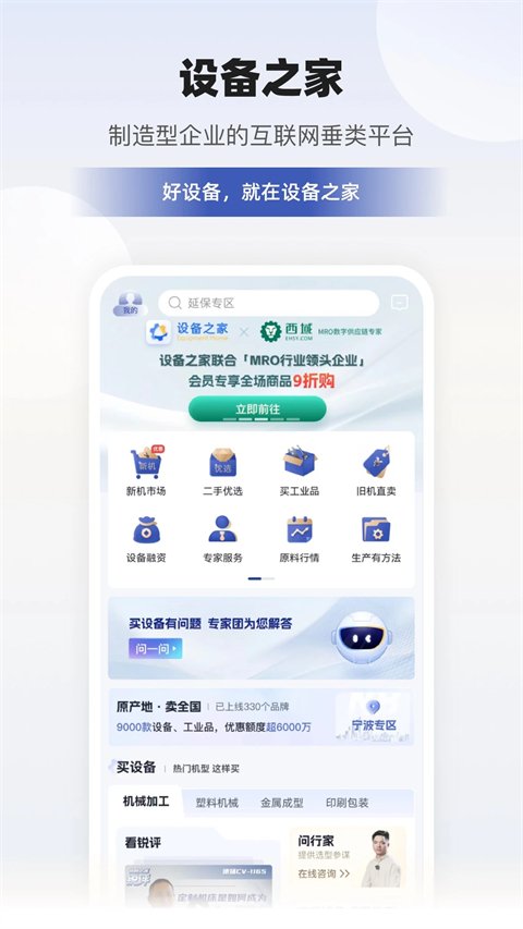 围绕买设备、卖设备、用设备全生态圈一站式服务平台,提供专业的设备交易市场和生产制造降本增效服务。