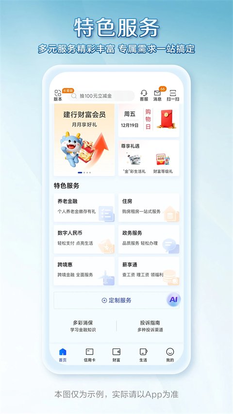 养老、跨境、代发、乡村、社保、亲子等多种客群和功能专区,为不同客户打造专属服务。