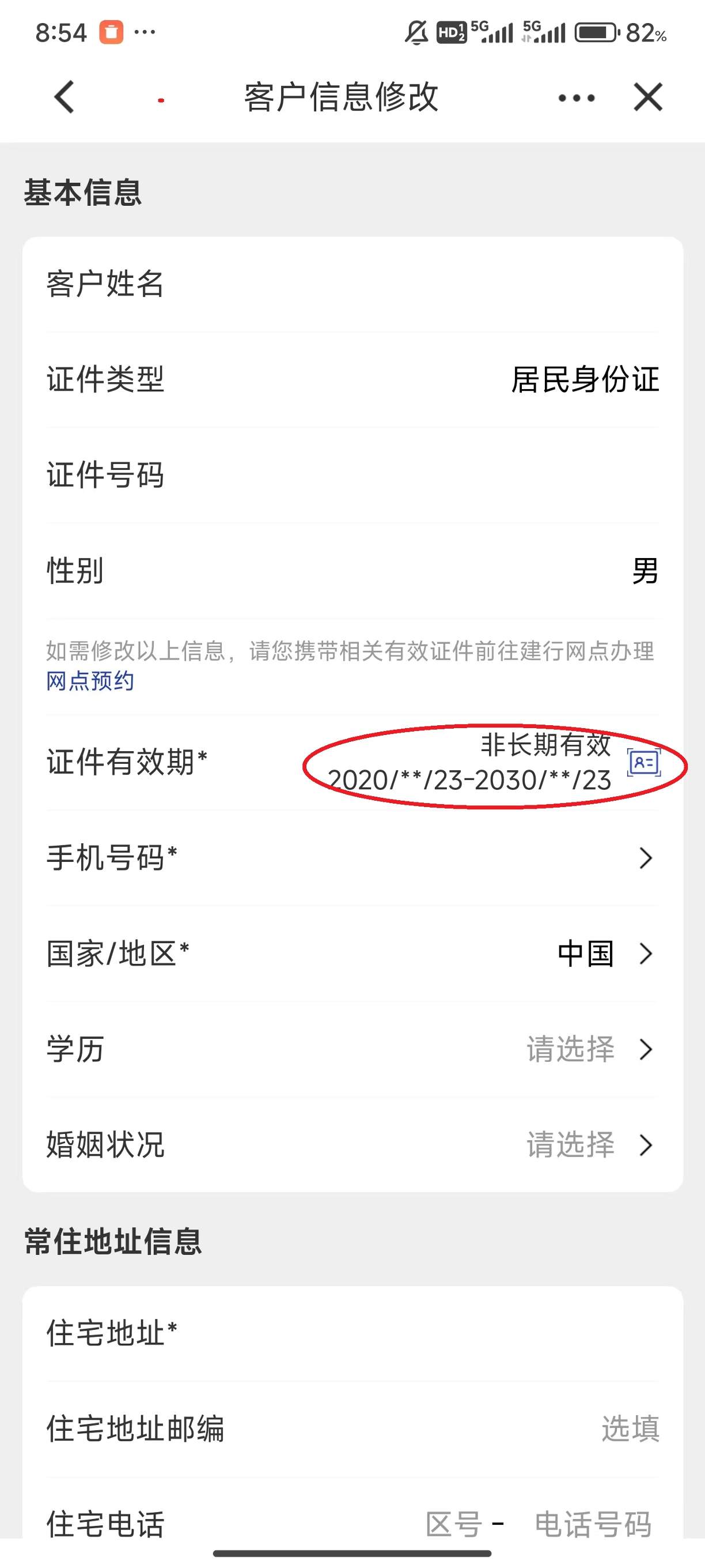 4、点击下方的“证件有效期”,随后根据页面提示将身份证正反面扫描,这样就完成了身份证的更新。