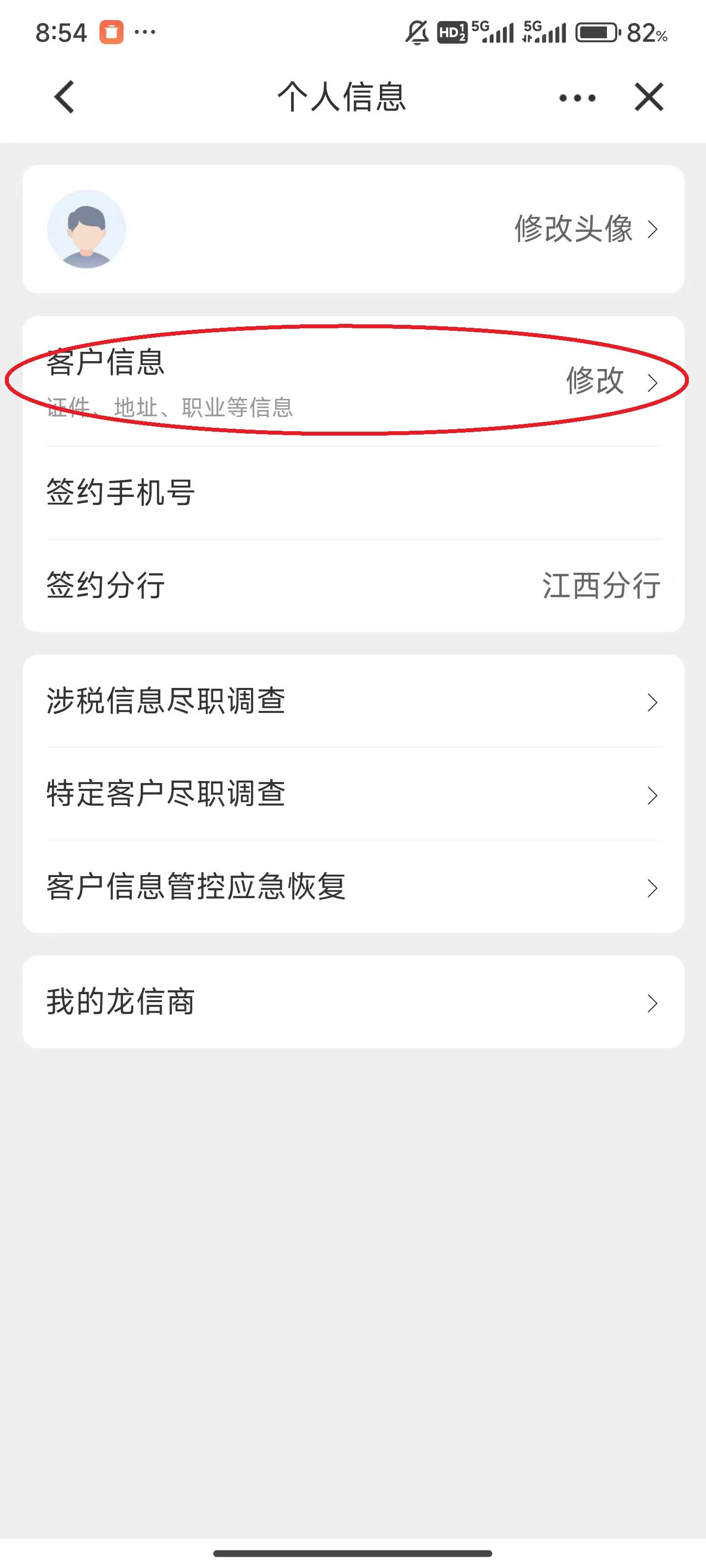 3、点击屏幕上方的“客户信息”。