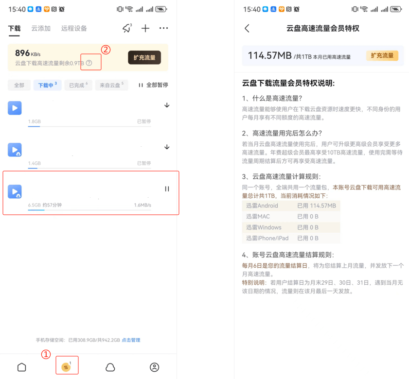 迅雷云盘下载高速流量特权详解