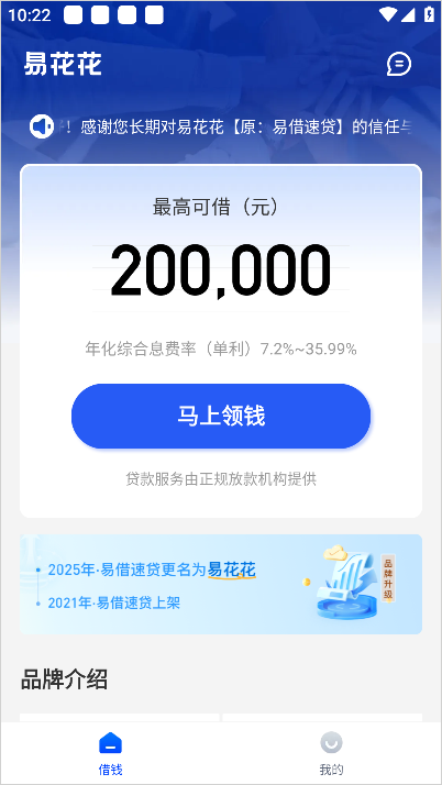 易花花是一款现金分期贷款软件。其与锡商银行、大兴安岭银行、马上消费金融等多家金融机构深度合作,致力于为广大用户提供简便、安全的信贷服务。易花花凭借其强大的人工智能和大数据风控技术,能够快速精准地为用户匹配最佳贷款方案。平台的申请过程简便快捷,审批高效,用户能够在短时间内获得审批结果,高额度、低利率、灵活还款等特点,使得易花花成为许多用户的首选贷款平台。