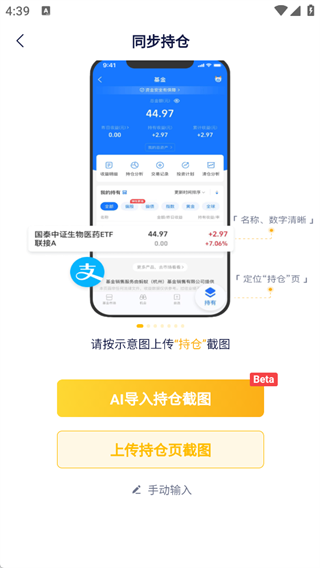 AI导入持仓截图:直接上传你的基金持仓页截图,由AI自动识别。