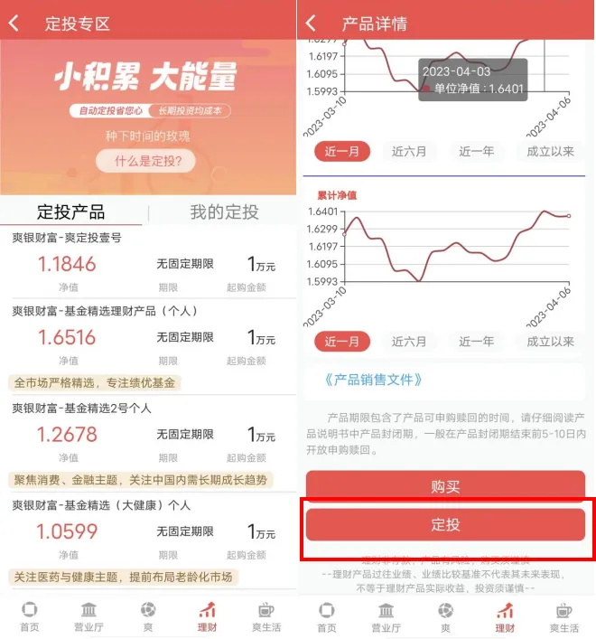 进入产品详情页面后点击“定投”