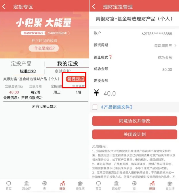 点击“我的定投”中对应定投计划的“管理定投”