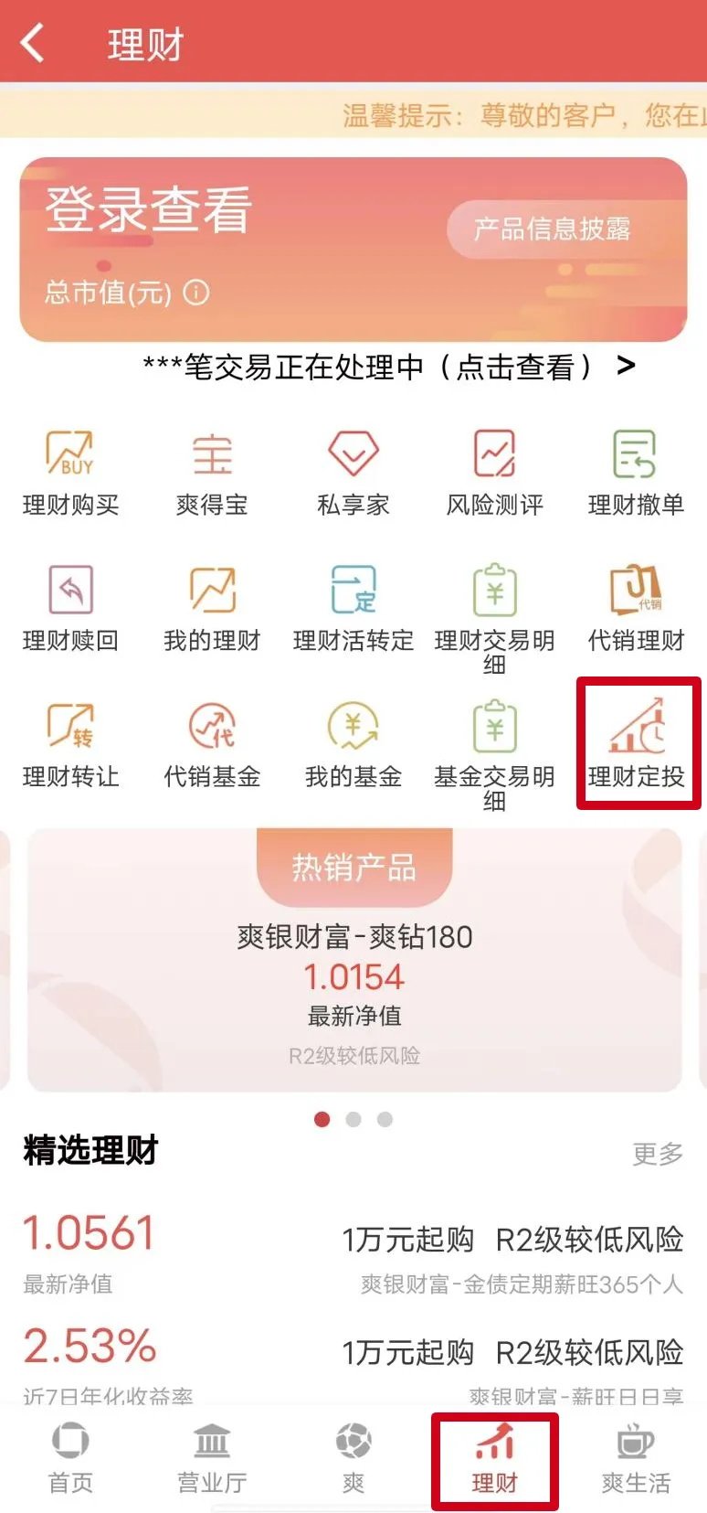 点击“理财”板块的“理财定投”专区