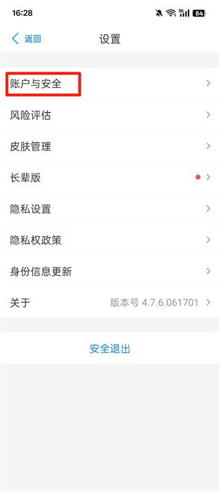 3、点击【账号与安全】