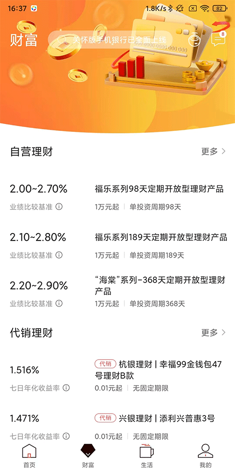 3、自营理财产品,轻松玩转金融服务;