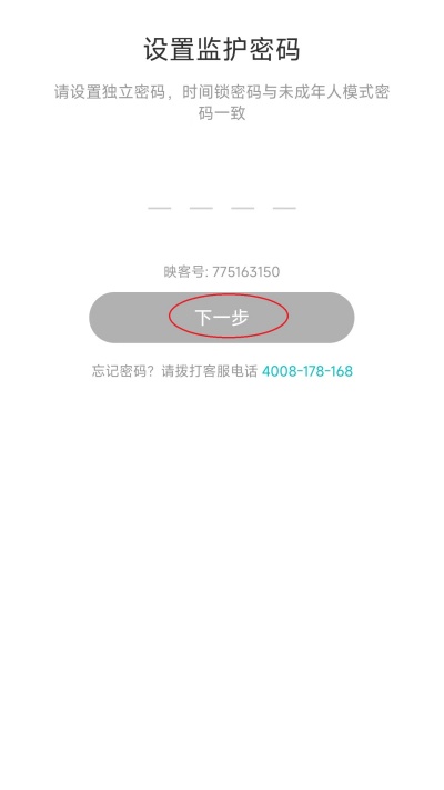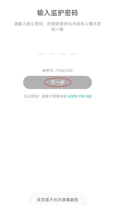 8、输入监护密码后点击屏幕下方“下一步”进行验证。