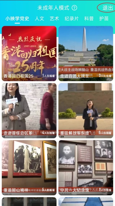 7、关闭未成年模式时,点击屏幕右上角“退出”按钮。