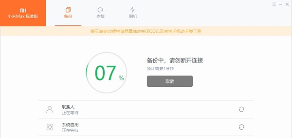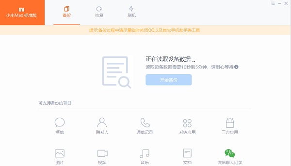 2、等待时间过长:根据手机内的数据量的多少,获取基本信息和备份的时间都会不同,数据越多所需时间越长。