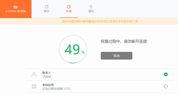 4、手机授权后开始恢复过程: