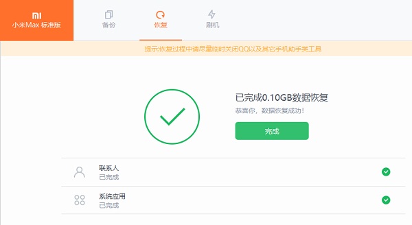 5、恢复数据完成: