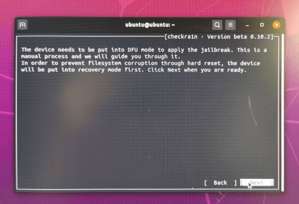要开始越狱前,必须将手机进入DFU 模式,按下Next 就会自动协助你进入该模式;