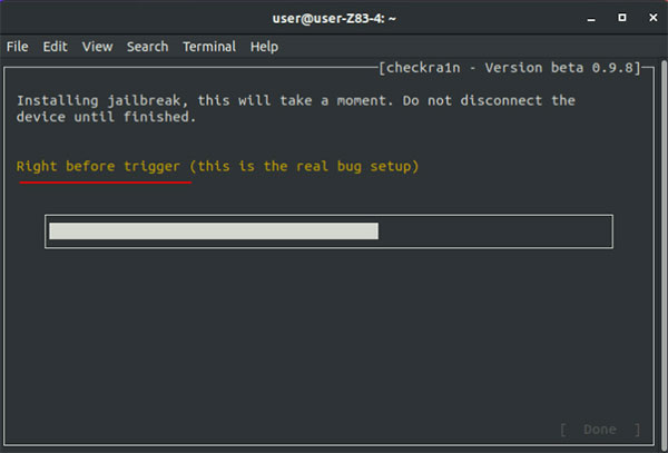 注意:如果越狱过程中,卡在Right before trigger这个画面,有以下解决方法: