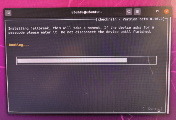 成功让iPhone 进入DFU 模式之后,Checkra1n 就会立即进行越狱啦,越狱完成后按下Done 就完成啰。