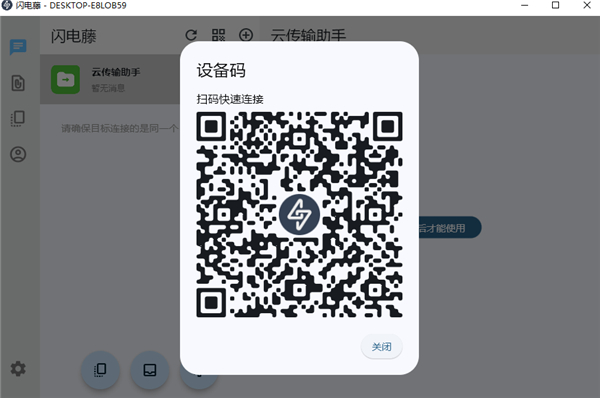 闪电藤电脑版是一款支持安卓、iOS、Mac、Windows、Linux端跨平台使用的文件传输助手。通过它用户只需在另一设备上安装闪电藤,即可实现同一个局域网自动匹配连接并进行图片、音频、安装包等资源加密传输,且传输不限制大小!当然,用户也可以通过扫码应用中的二维码进行识别绑定,以便于下次更快、更便捷的进行超速传输。有需要的用户欢迎下载使用。