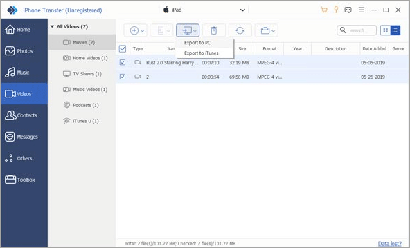2、支持文件从iOS设备传输到PC / Mac,从计算机传输到iPhone iPad iPod,从iOS设备传输到iTunes