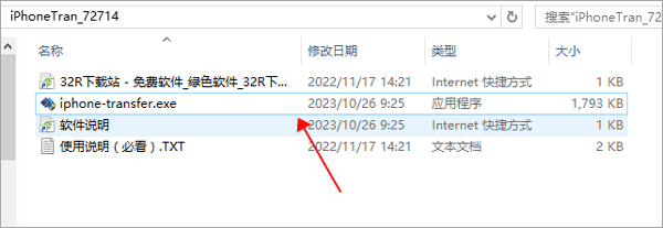 1、下载软件压缩包文件,直接点击“iphone-transfer.exe”运行。