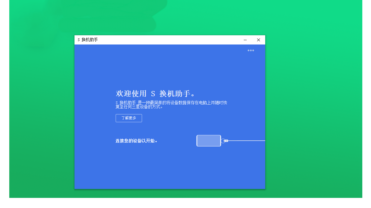 在电脑上运行S 换机助手软件,并使用USB线缆将您的全新三星设备与电脑相连。