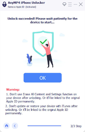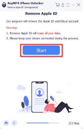 点按“开始”按钮,立即开始移除Apple ID和iCloud帐户。