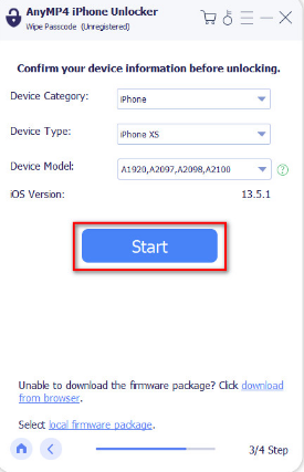 确认你的iPhone信息,点击开始按钮下载固件包。