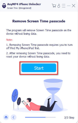 点按“开始”按钮以移除屏幕时间密码或限制密码。