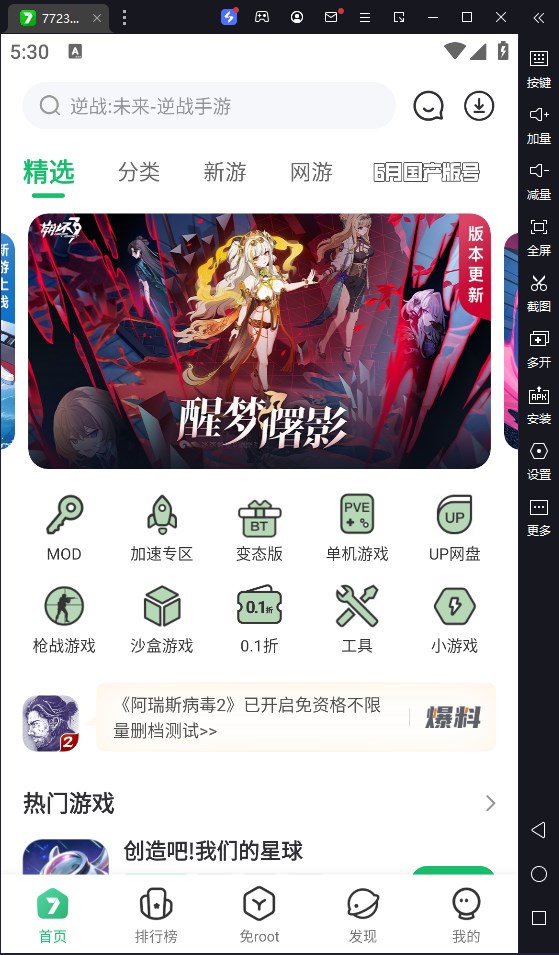 7723游戏盒电脑版是借助安卓模拟器运行在pc端上的一个游戏盒子软件,软件内不仅包含了海量的游戏资源,提供了益智、休闲、恐怖、动作、格斗等多种类型题材,而且还设置了破解游戏、BT游戏专区,可以满足游戏爱好者的各种需求。此外,除了丰富的游戏之外,软件内还提供最全面的游戏分类、专题和推荐,各类特色游戏畅享玩耍。此外,7723游戏盒汇集了大量大神攻略,万千礼包,游戏社区,手机页游为一体,用户既可以快速的搜寻到自己想要的游戏和游戏攻略,以及游戏礼包,又可以在社区内结识好友,与他们交流互动。