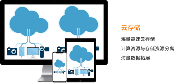 海量高速云存储,计算资源与存储资源分离,海量数据拓展。