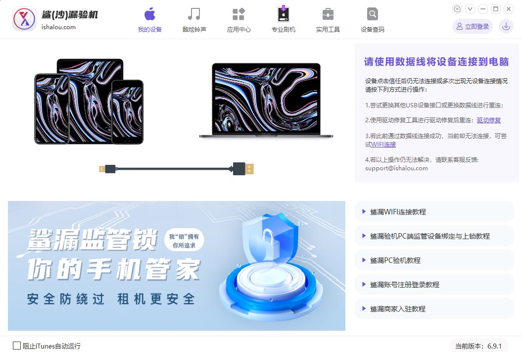 WIFI连接的设备,表示该设备开启了iTunes无线同步的功能,可以用沙漏验机助手断开WIFI连接,也可以手动关闭WIFI断开连接!详情