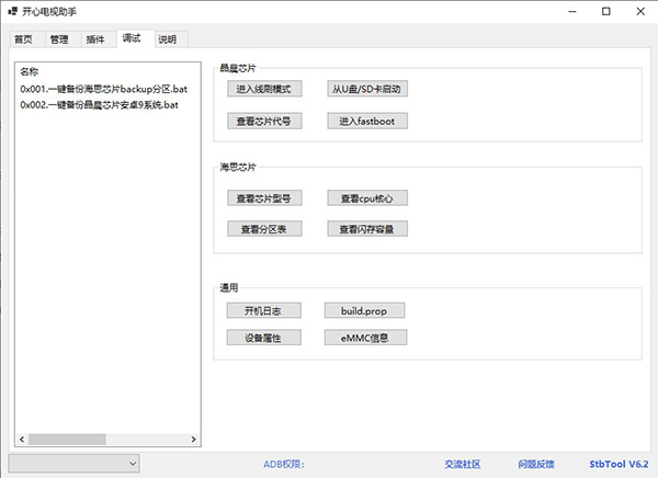 5、点击调试按钮可以对海斯芯片以及晶晨芯片进行调试